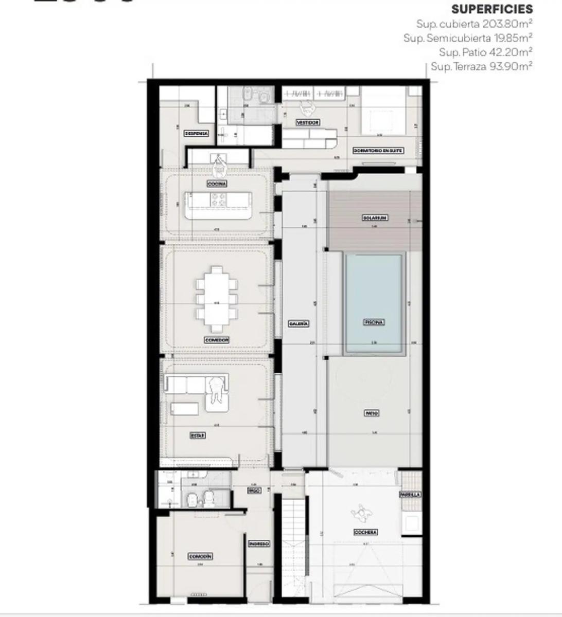 Casa 4 dormitorios amenities cochera Pasaje Monroe 2958 RosCasa de 4 dormitorios amenities cochera Pasaje Monroe 2958 Rosario.Excelente una casa que lo tiene todo: diseño, funcionalidad, espacios de esparcimientoy detalles que enamoran. Ideal para familias que buscan amplitud y calidad de vida.Propiedad a estrenar, plasmada en 2 plantas con Cochera.Superficies: Cubierta 203,80 m2, Semi cubierta 19,85 m2, Patio 62 m2, Descubierta 42,20 m2 ( de patios), Terraza 90,93 m2. (2 terrazas)Hall de Ingreso. Escritorio o dormitorio, al frente, Cochera, gran living comedor cocina semi integrada con Isla y excelente mobiliario.Despensa. Ventanales de doble hoja con formato de arcadas. Lo que permite mayor luminosidad y ventilacion.Salida de los ambientes de área social a la galería que forma parte del Patio, con solarium, pileta, espacio verde, parrilla..Dormitorio principal con vestidor, Los placares con sus interiores. y baño en suite todo equipado, Vista al jardin.Planta alta: 2 dormitorios, baño completo y amplio Lavadero independiente,Salida a una gran terraza como espacio verde que invita al Relax. Lista para habitar.Descubrí esta propiedad única, pensada para quienes valoran el confort, la estética y los espacios de encuentro.Con una superficie total de más de 358 m², esta casa combina arquitectura moderna con detalles cálidos que invitan a vivirla.