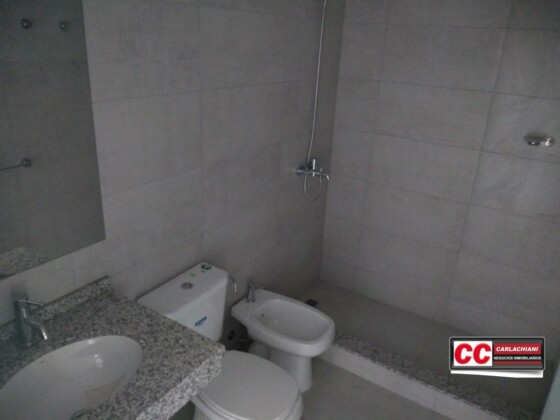 . El baño está equipado con ducha, inodoro con mochila y bidet (marca Roca), mesada de granito y bacha de porcelana. Excepto en las unidades de dos dormitorios donde poseen bañera