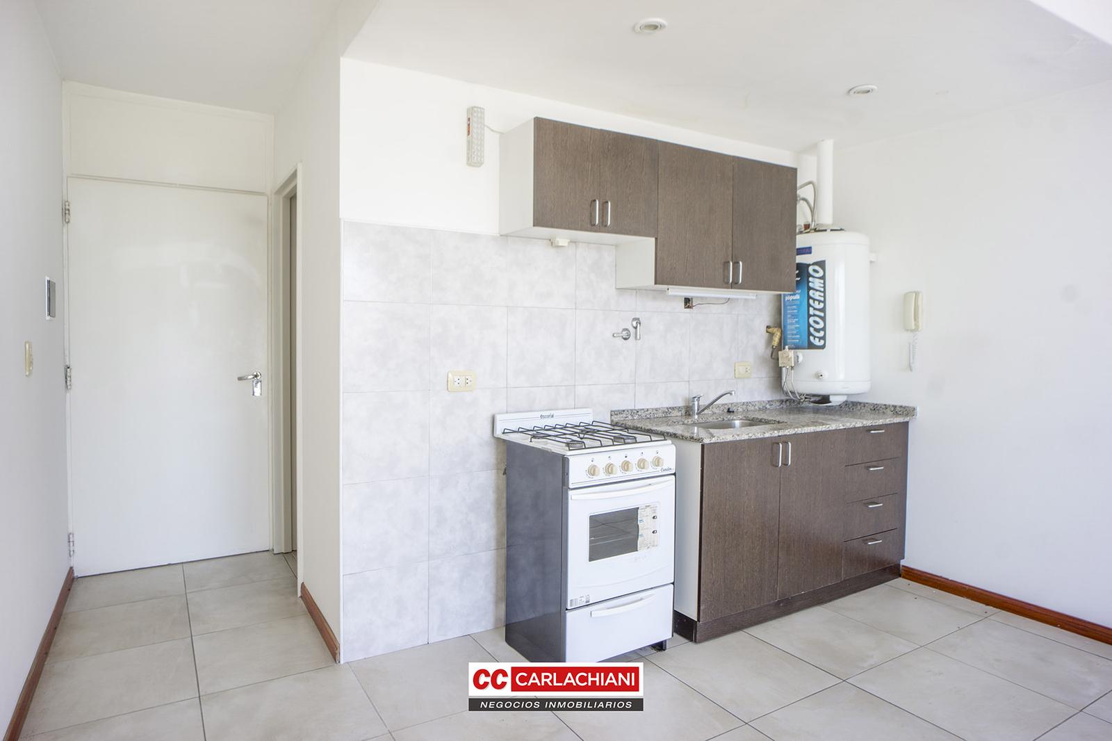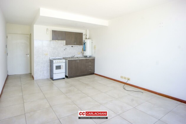 DESCRIPCION DE LA UNIDADDepartamento 4 piso al frente, orientación Oeste, súper luminoso. Ambiente único con cocina integrada, mueble de bajo mesada y alacena, aparato de cocina y termo tanque a gas, 1 baño completo con receptáculo, amplio balcón con vista despejada.
