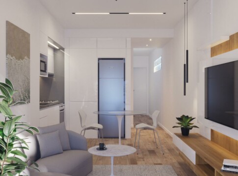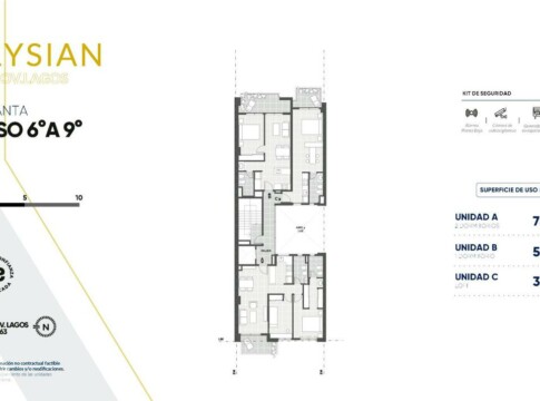 12 unidades semipisos de 2 dormitorios que se distribuyen en 6 plantas. Todos los departamentos tienen ventilación cruzada y balcones con orientación norte.
