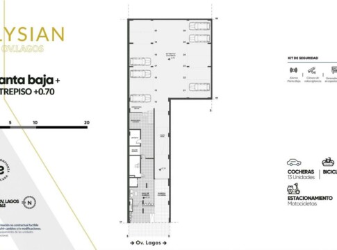Cocheras disponibles por montacoche en subsuelo y planta baja. Bicicleteros