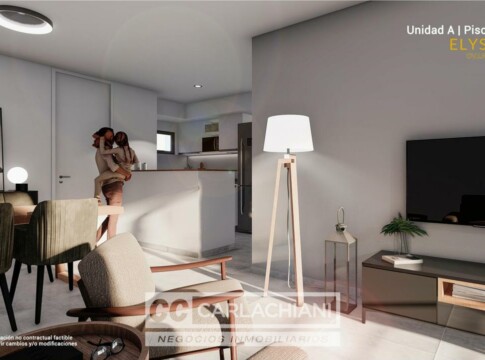Ingreso a living-comedor amplio de cómodas dimensiones, cocina semi integrada muy equipada y moderna con isla.