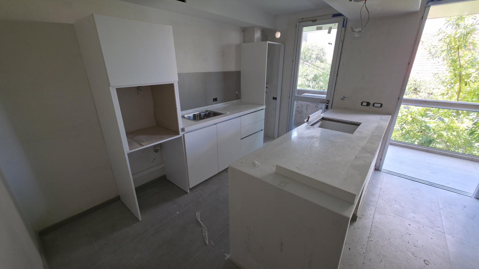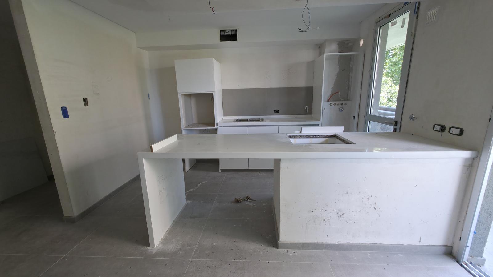 Ingreso a living-comedor amplio de cómodas dimensiones, cocina semi integrada muy equipada y moderna con isla.