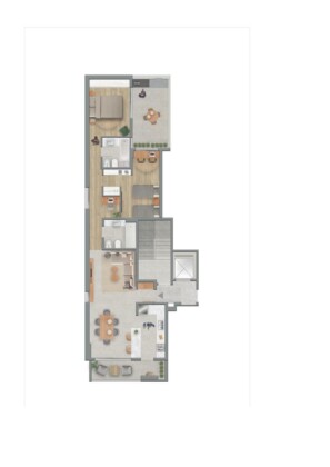 12 unidades semipisos de 2 dormitorios que se distribuyen en 6 plantas. Todos los departamentos tienen ventilación cruzada y balcones con orientación norte.