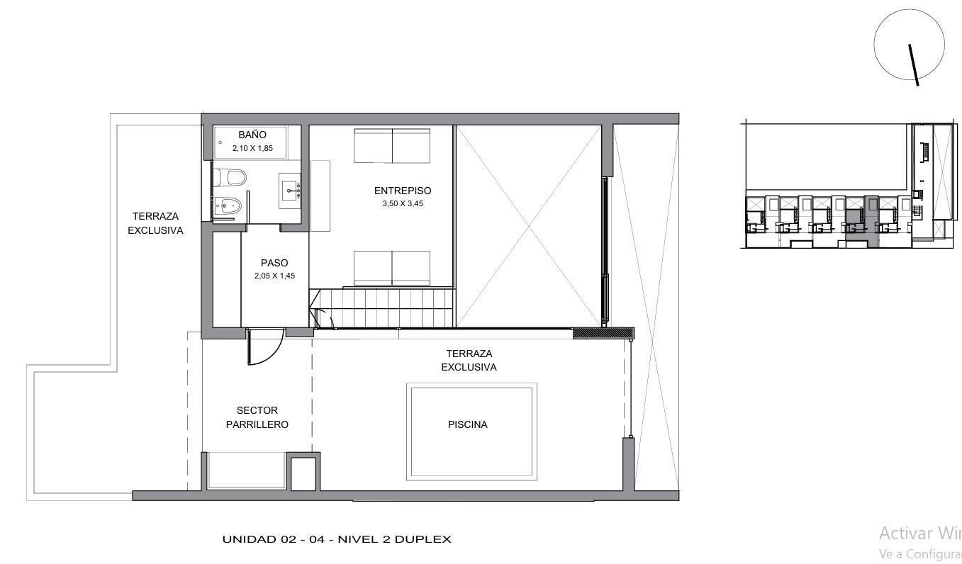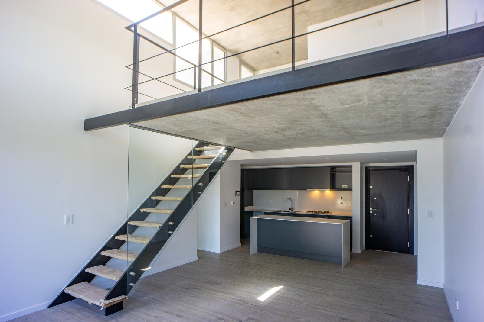 La unidad que ofrecemos se trata de un Departamento dúplex de 2 dormitorios de gran superficie, con un diseño moderno tipo loft, techos de hormigón visto, pisos de porcelanato, ubicado al frente, con orientación Oeste. Cocina integrada al living comedor con isla con mesada de silestone, bacha de acero inoxidable, grifería monocomando de diseño, muebles de alacenas y bajo mesada, caldera, horno y anafe empotrados. En el primer nivel de la unidad cuenta con un baño completo, lavadero, un dormitorio, living comedor con salida al balcón corrido y mediante una cómoda escalera se accede al 2do nivel donde encontramos un baño completo y el 2do dormitorio, además de salida a la terraza privada con parrillero y pileta privada.