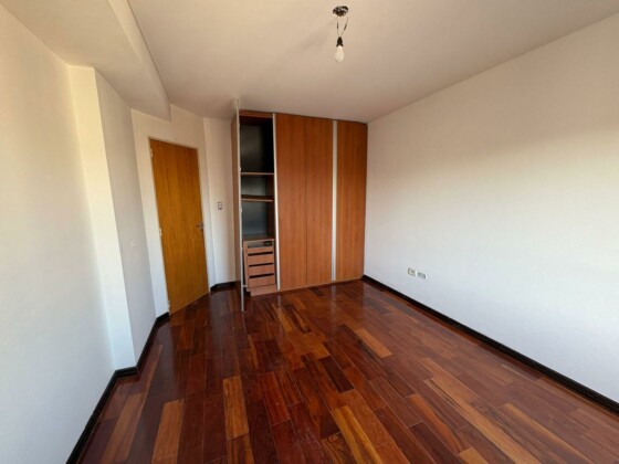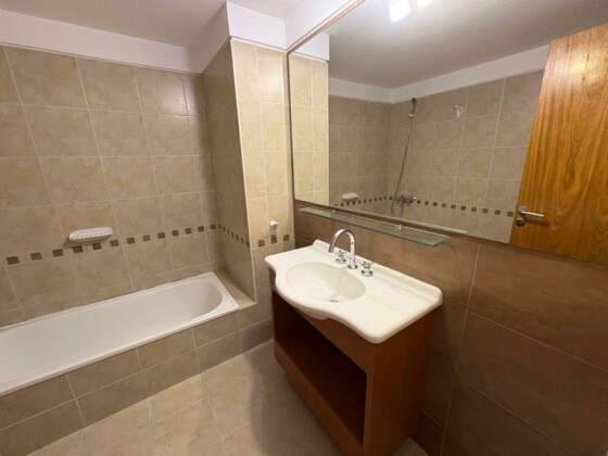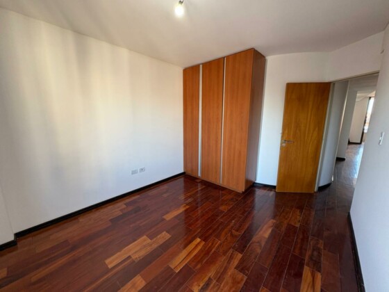 Edificio “Abril” Semipiso externo con orientacion norte- Estar comedor amplio con salida a balcon, Cocina separada con alacenas y bajo mesada con sector de Lavadero, Baño completo con bañera y 2 dormitorios al contrafrente de muy buenas dimensiones con placares. El edificio tiene en la azotea quincho cerrado con Asador. Vigilancia 24 hs.