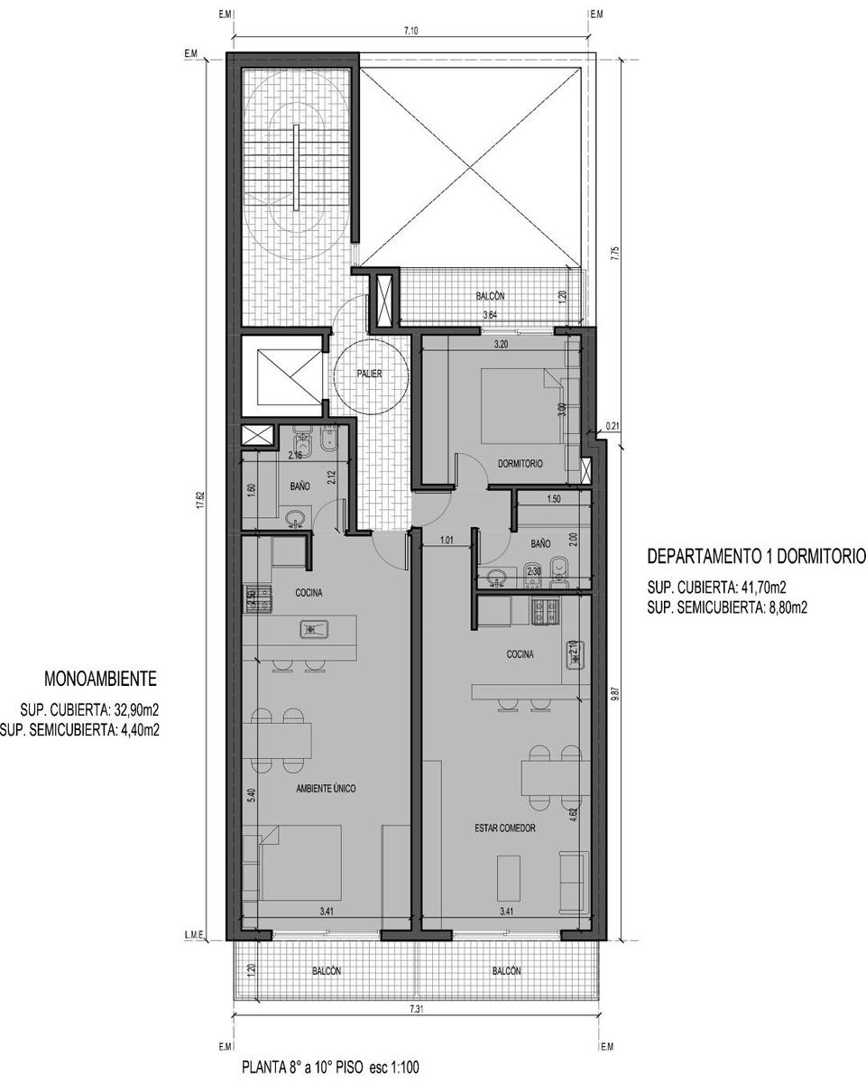 Por piso son dos departamentos, es decir esta unidad es un semipiso. (Uno de un dormitorio y otro en monoambiente).