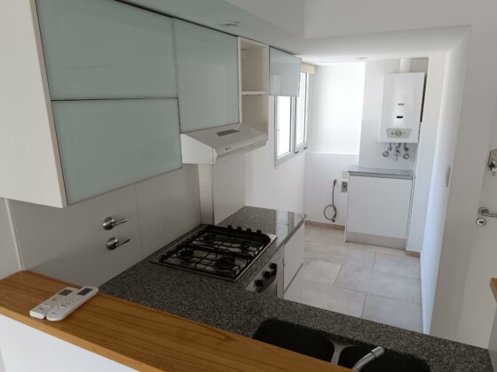 DESCRIPCION DE LA UNIDADLa unidad disponible cuenta con cocina semi incorporada muy equipada y completa con alacena en vidrio pintado, doble bajo mesada, bacha de acero inoxidable, horno eléctrico y anafe de cuatro hornallas a gas empotrados, y termo tanque eléctrico instalado. Lavadero separado con conexión para lavarropas y barra desayunador de madera laqueada. Baño completo con bañera. Equipado con aire acondicionado y calefactor a gas tiro balanceado instalados.