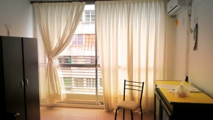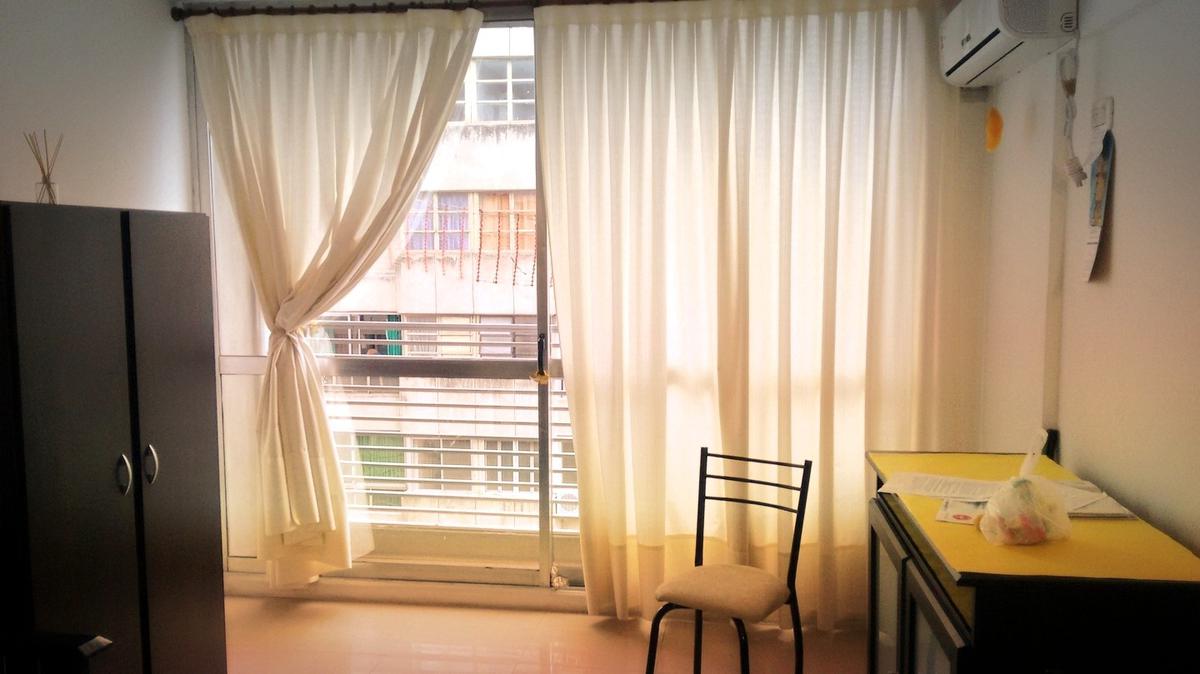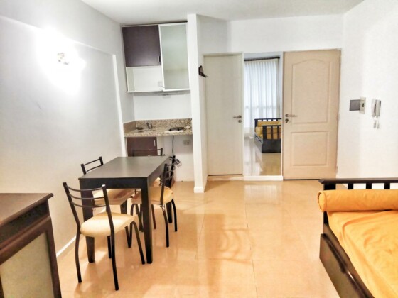 Monoambiente amoblado al frente. Cuenta con mesa con 4 sillas, cama marinera, placard, anafe eléctrico y termotanque eléctrico. Aire acondicionado y mueble con dos puertas para televisor. Ajuste Cuatrimestral por IPC