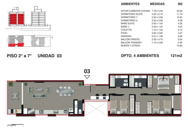 Balcón al frente y al contrafrente con salida del dormitorio secundario.