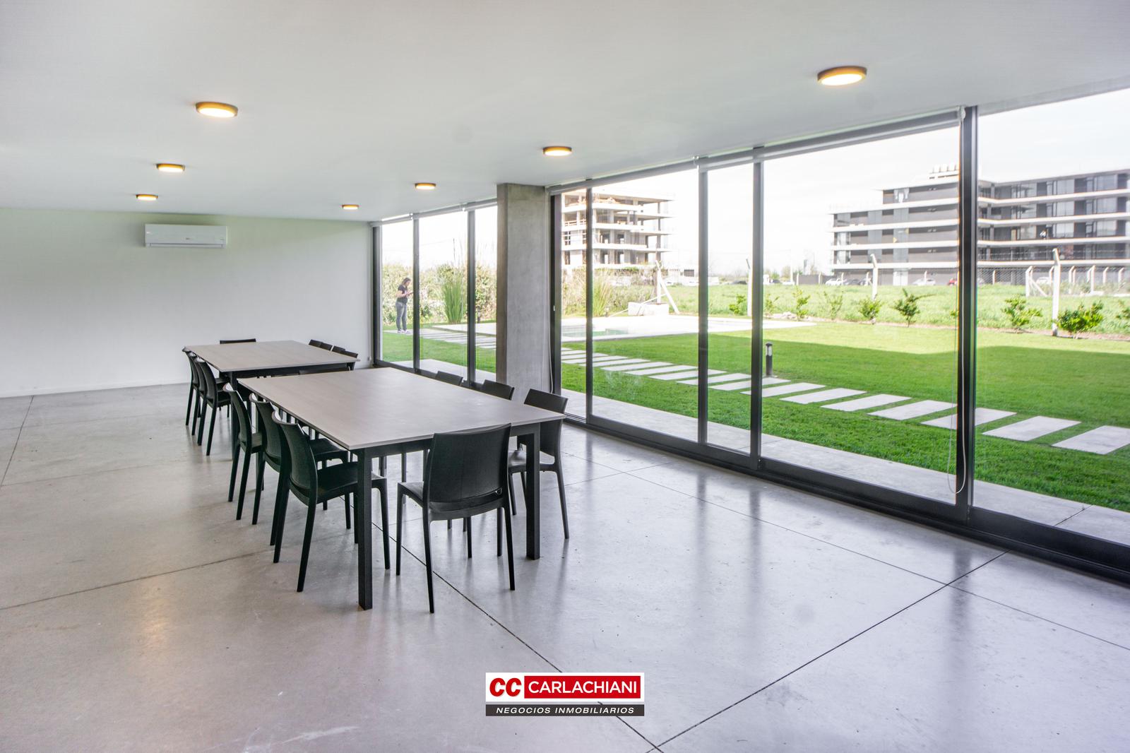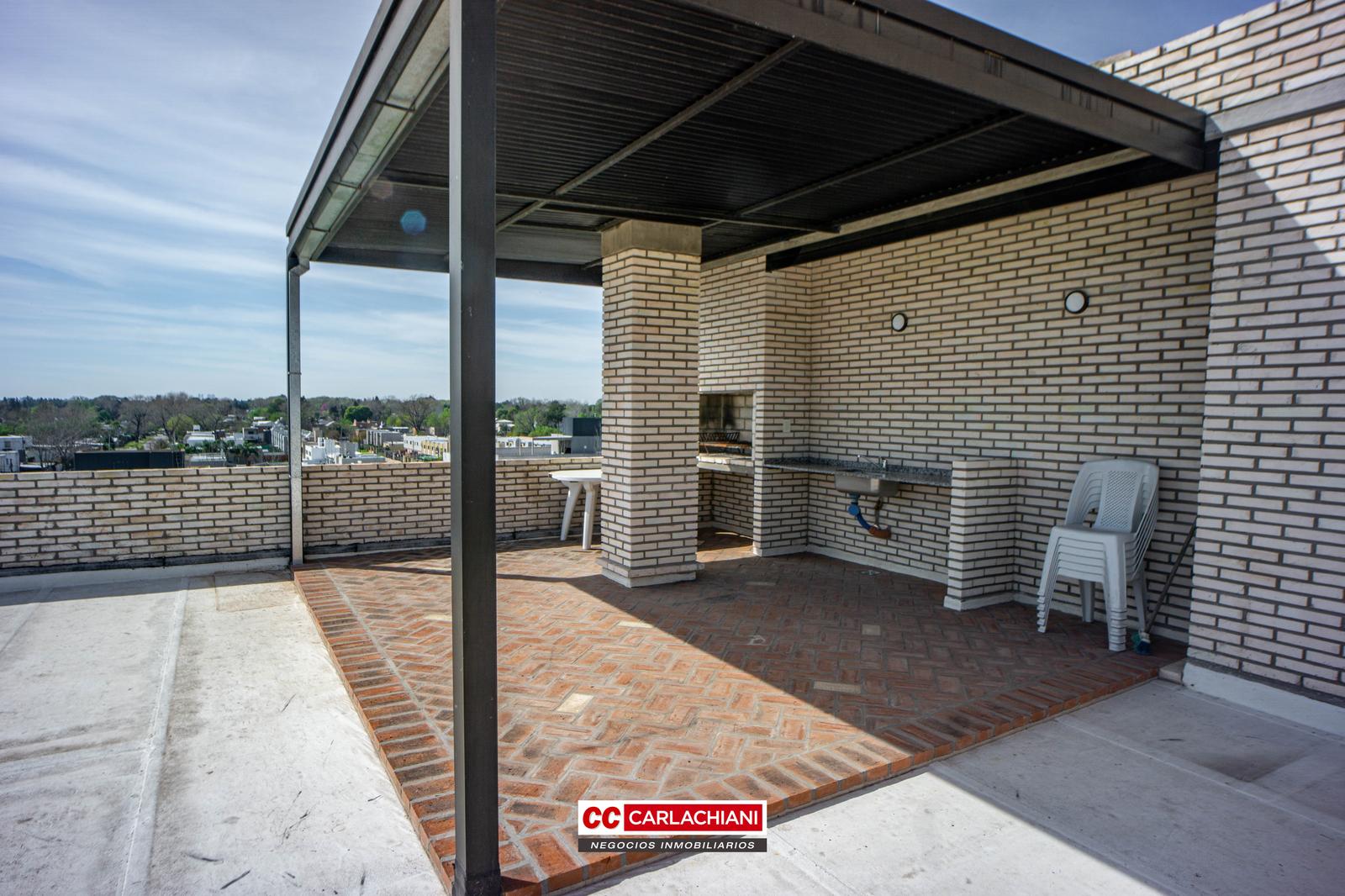 El complejo posee acceso con llave magnética, un palier muy moderno vidriado con ascensor de última generación. Cuenta con cochera para 2 vehículos, SUM en planta baja con baño, pileta con solárium y un amplio jardín muy cuidado que aporta verde y naturaleza. Además cuenta con quincho con parrillero en planta alta.