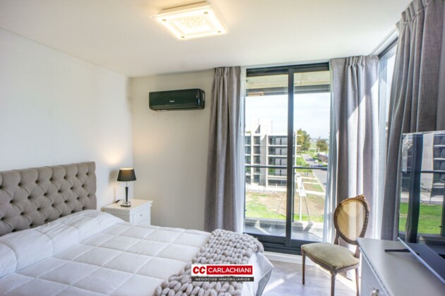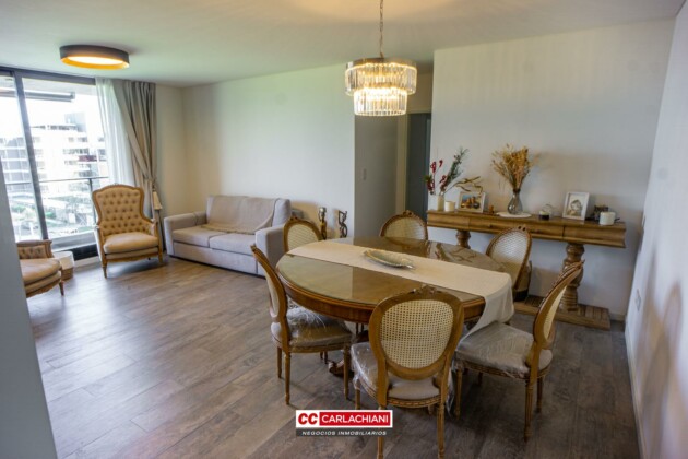 A la unidad se accede al living comedor, cocina semi integrada, sector de lavadero independizado, toilette, baño completo y 3 dormitorios, 2 con placares, uno con vestidor y baño en suite. Además posee un amplio balcón terraza con parrillero a lo largo del departamento.