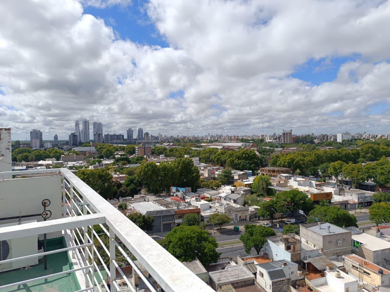 Departamento monoambiente de 33,12m2, se encuentra en el piso 11, vista al contrafrente totalmente despejada, cuenta con kitchenette con mueble de bajo mesada y alacenas, aparato de cocina, termotanque y calefactor instalados, 1 baño completo con bañera y ventilacion natural, un placard doble con interiores incorporado, amplio balcon y una terraza de uso exclusivo de 33,68m2.