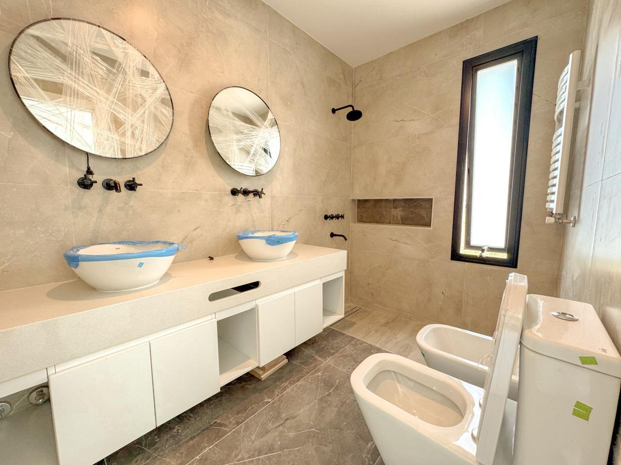 CARACTERíSTICAS CONSTRUCTIVAS:- Ingreso vehicular terminación hormigón llaneado- Pisos interiores, exteriores y revestimientos de porcelanato primeracalidad (marca portobello, portinari, ilva)- Preinstalación de aire acondicionados Split en dormitorios y living-comedor- Calefacción por radiadores- Muebles de cocina color blanco mate con perfil J y alacenas con mesadasde Silestone Blanco Paloma- Artefactos sanitarios Marca Roca Modelo The Gap y Marca Ferrum ModeloVeneto- Griferías Estalgrif Arona, Tauro y Quartier Andez- Bachas de cocina lavadero y parrillero Marca Johnson- Aberturas de aluminio color Negro línea Modena y A30New con DVH,vidrios de seguridad y cámara de aire