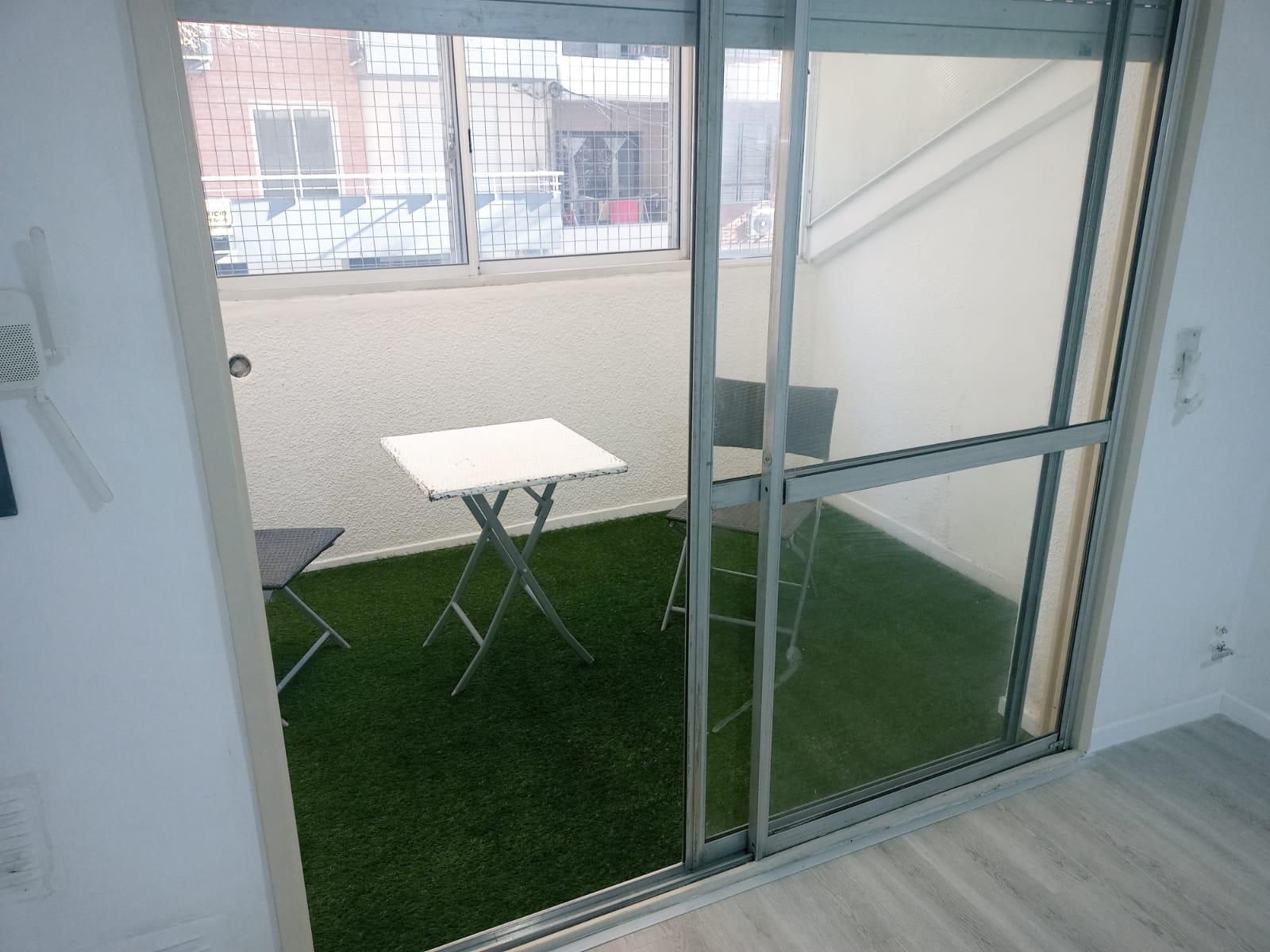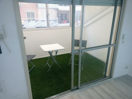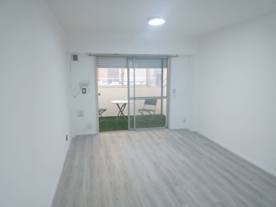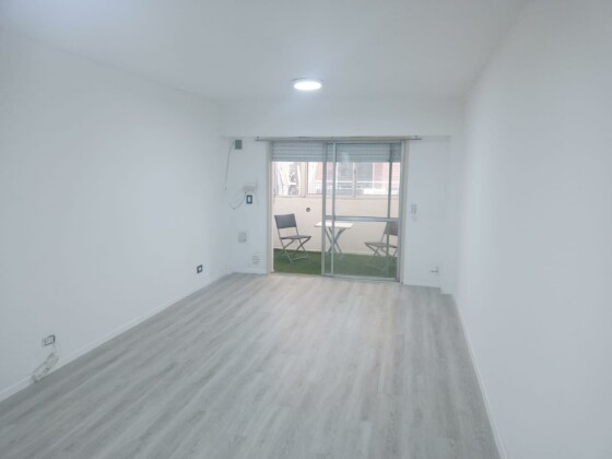 Amplisimo Ambiente Unico en 1º Piso- Piso flotante- Balcòn al frente con cerramiento y cesped sintètico- Cocina- Baño. Gas Natural. Muy buen estado.
