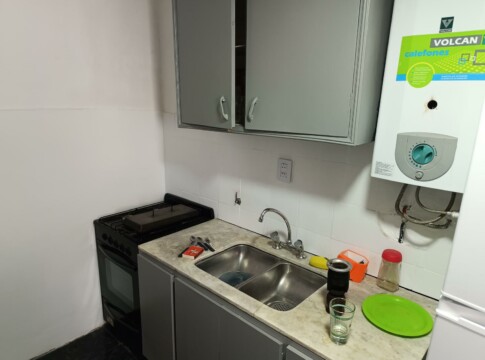 Departamento un dormitorio al contrafrente con balcón . Cocina completa semiintegrada . Baño completo con bañera y antebaño . Dormitorio con frentes de placares corredizo.